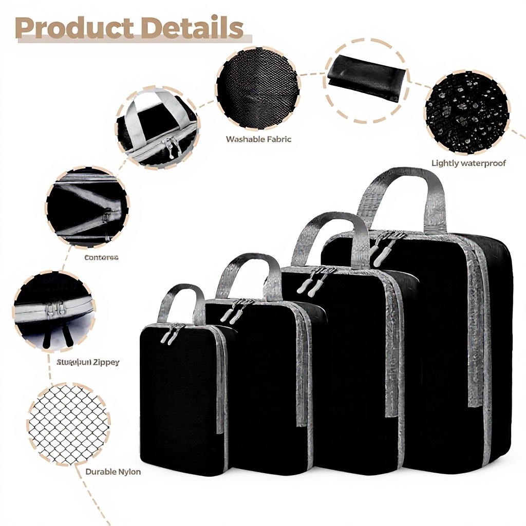 Ces quatre cubes de compression Woobroo transforment l’expérience du packing en un rituel organisé et visuellement satisfaisant. Conçus pour les voyageurs recherchant une méthode systématique de rangement, ils offrent une séparation claire des affaires tout en maximisant l’espace disponible. Le noir mat discret s’intègre dans toute valise sans attirer l’attention.