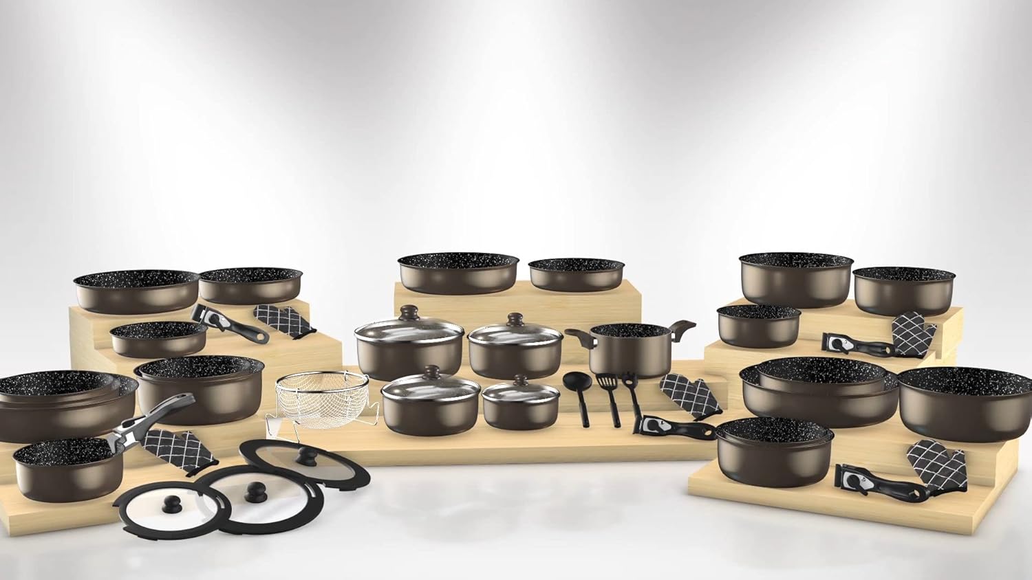 Les dimensions varient selon les pièces, conçues pour couvrir les besoins culinaires courants. Référez-vous aux spécifications du produit pour les mesures détaillées de chaque élément.