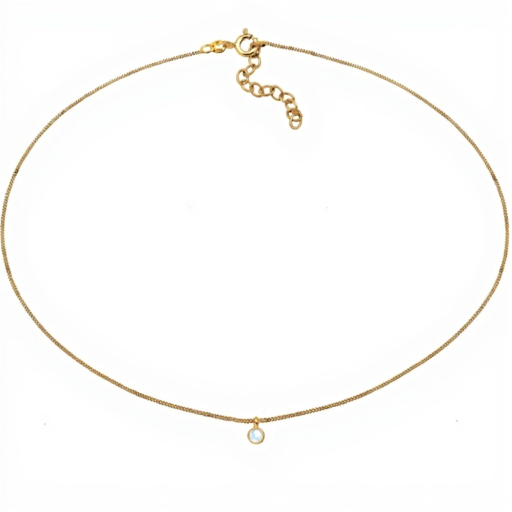 Le collier mesure 36 cm de longueur, une taille standard qui s’adapte parfaitement à la plupart des morphologies. Le pendentif en pierre de lune est solidement fixé sur une chaîne en argent sterling 925 plaqué or, garantissant légèreté et confort au porté. Le modèle est disponible en finition dorée, rehaussant la beauté naturelle de la pierre.