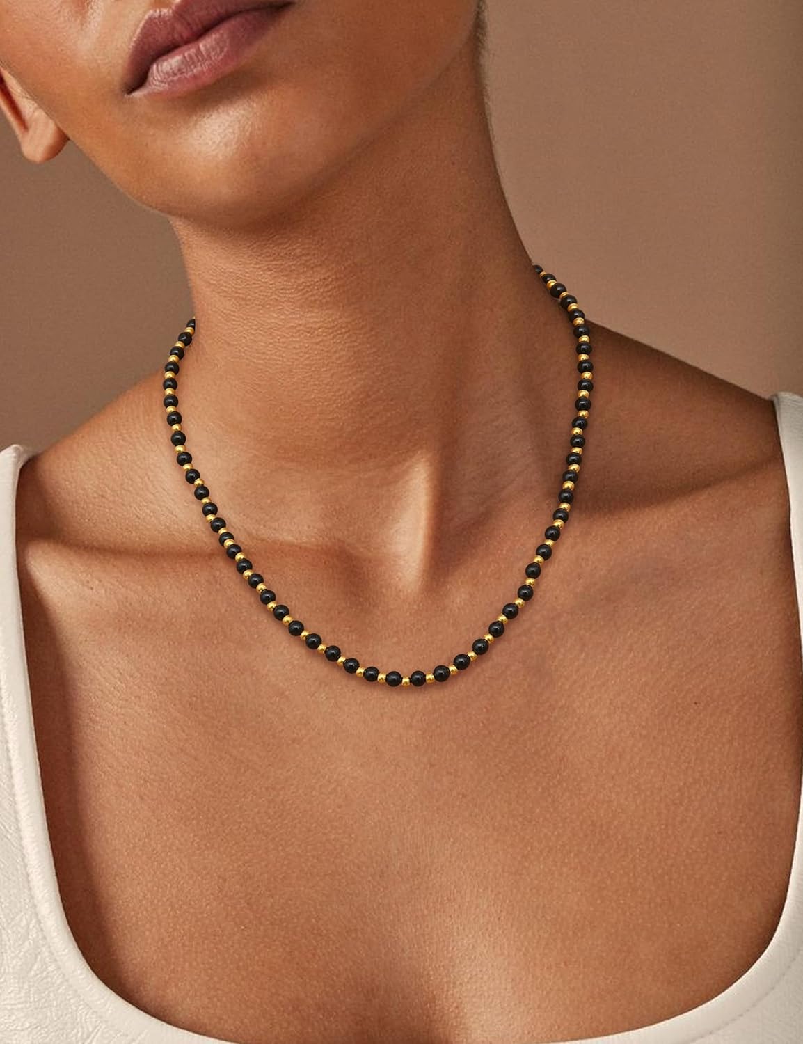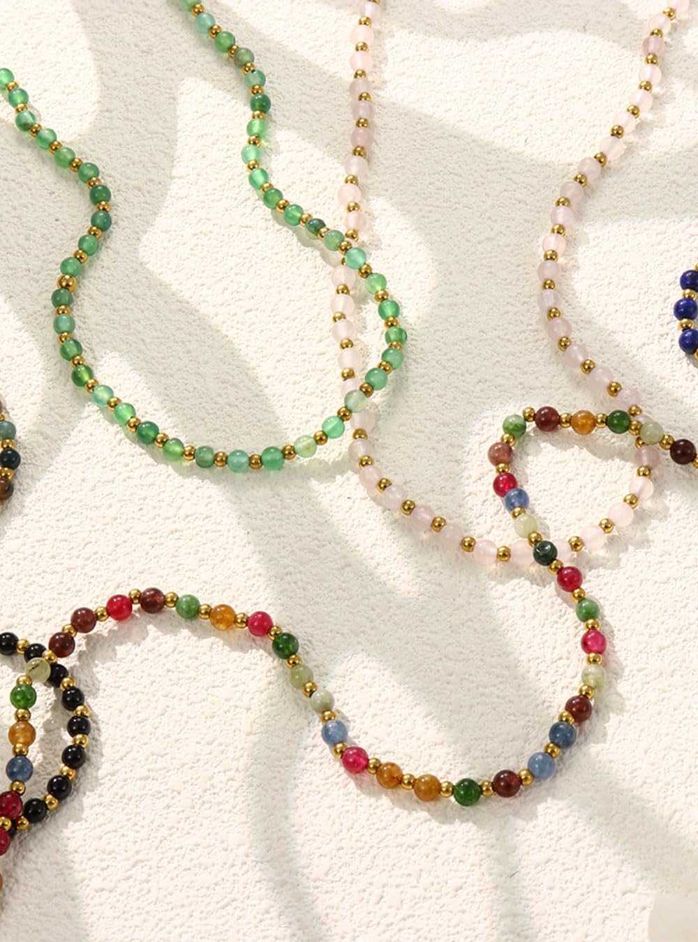 Ce collier allie esthétique et qualité avec des pierres naturelles soigneusement sélectionnées de 5mm et des perles en acier inoxydable hypoallergénique de 3mm. Chaque pièce est fabriquée à la main, garantissant un design unique et une finition soignée pour un port confortable au quotidien.