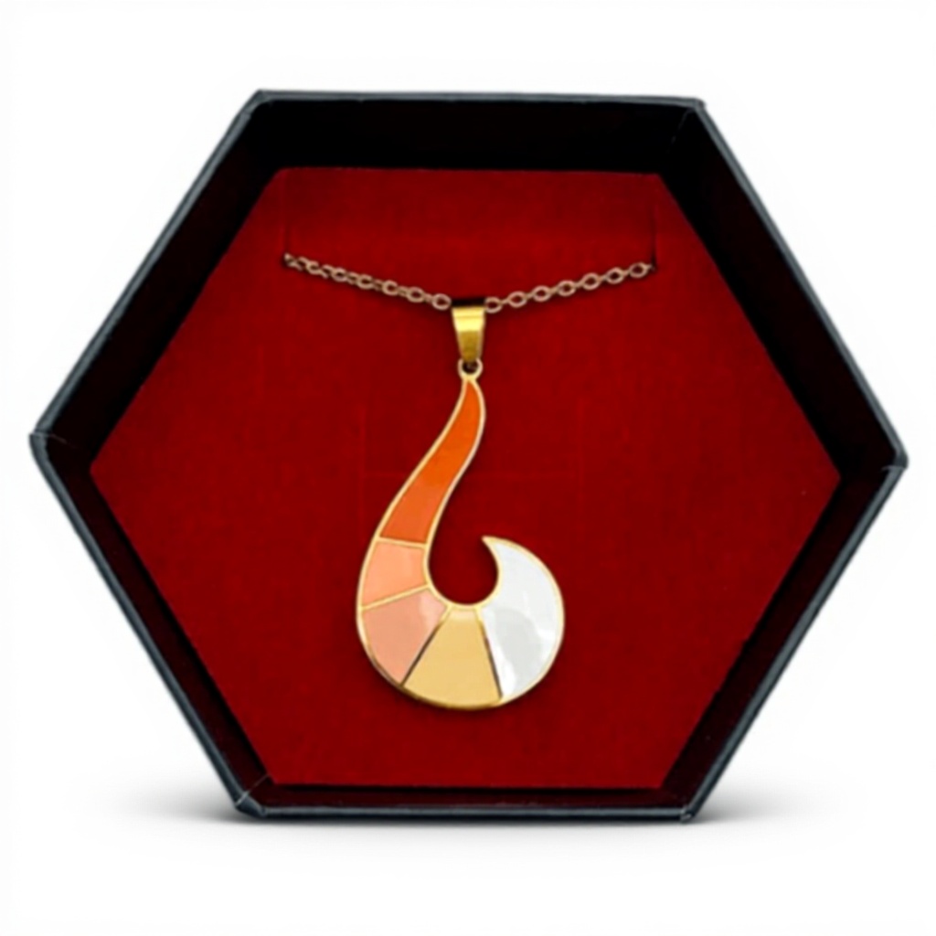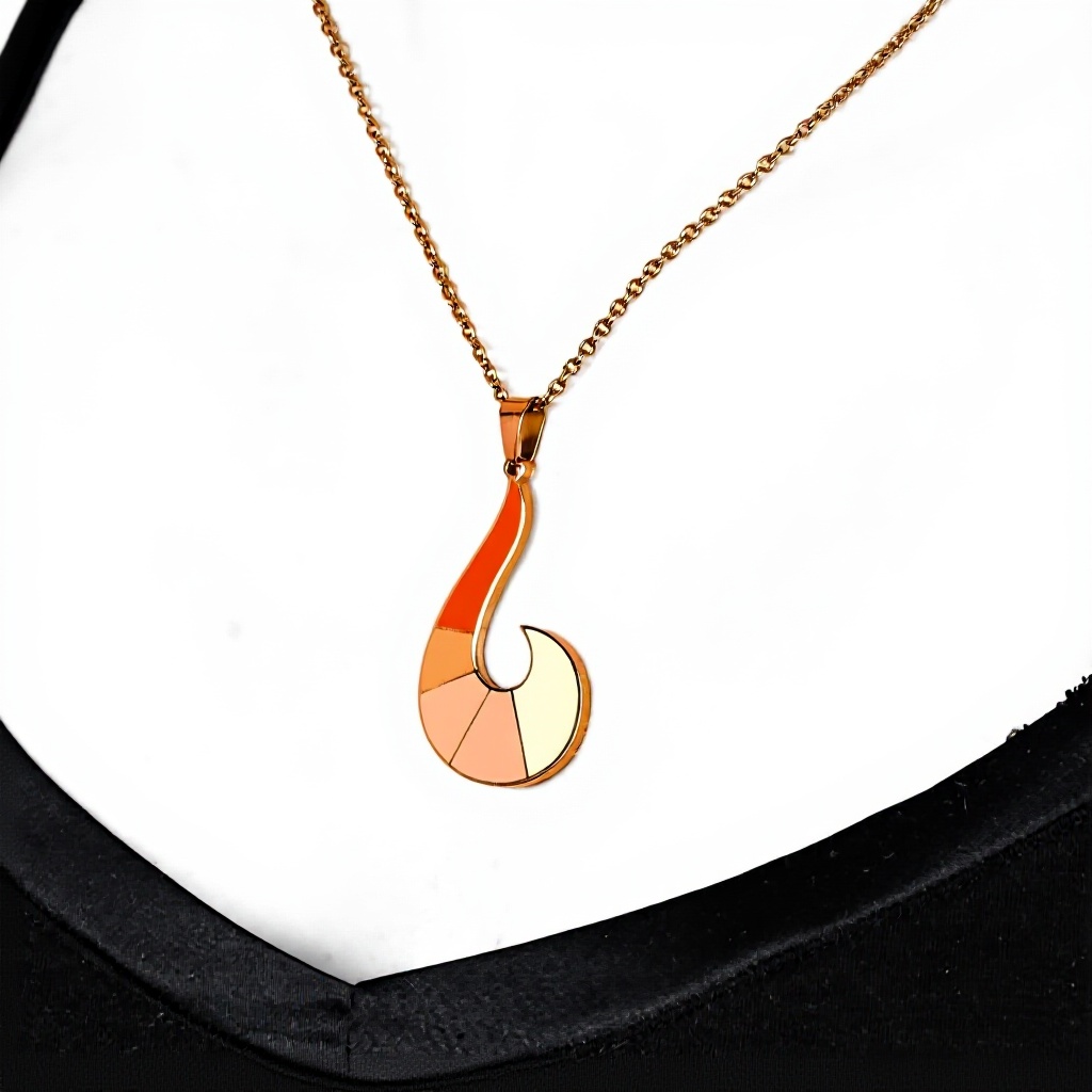 Le pendentif mesure 5 cm de hauteur sur 2,5 cm de largeur, suspendu à une chaîne de 45 cm de longueur. D’un poids de 68 grammes, il est fabriqué en Chine sous la référence modèle ZAG0277. L’alliage d’acier inoxydable assure résistance et légèreté, tandis que le placage or et l’émail apportent éclat et détails vibrants.