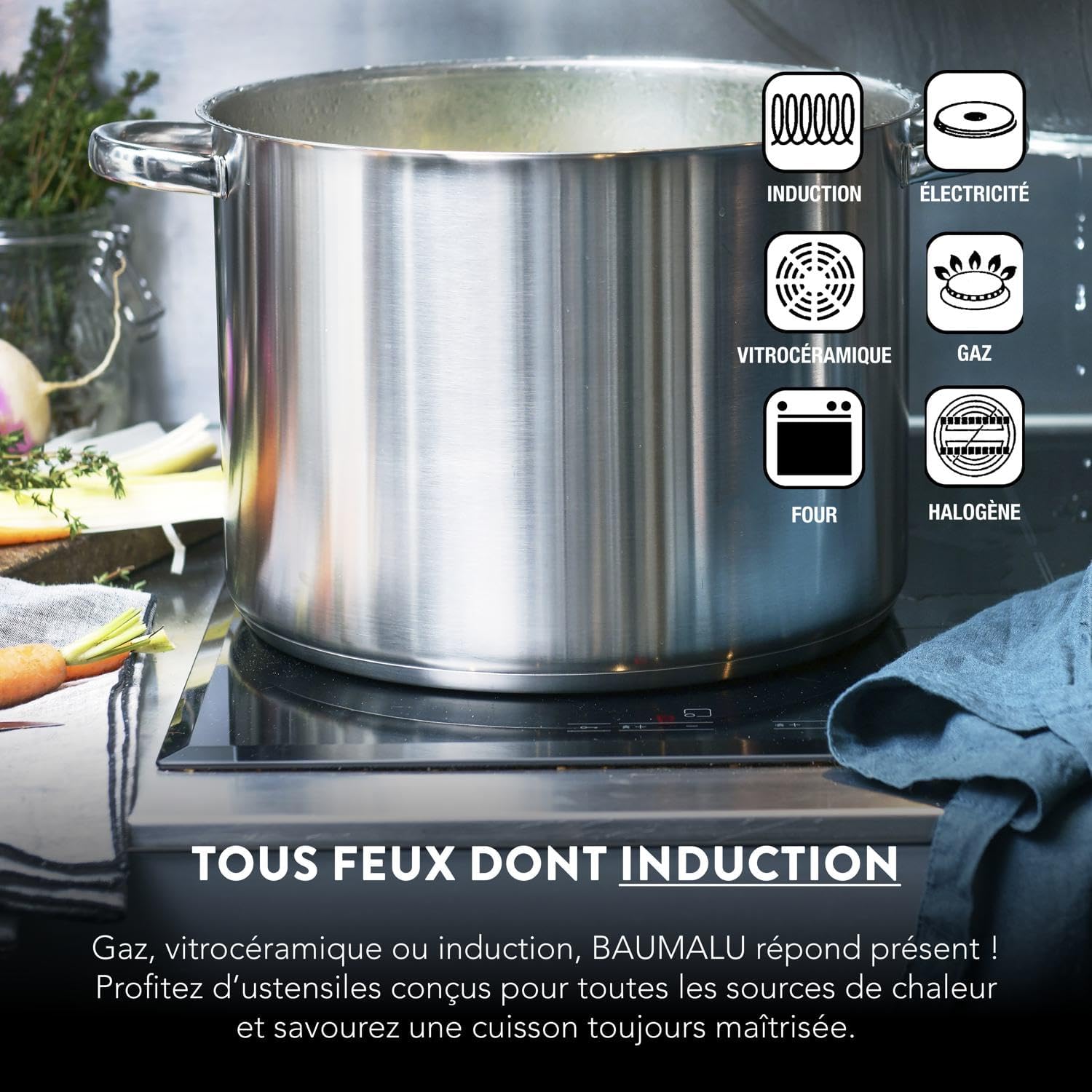 Oui, le couscoussier BAUMALU est conçu pour fonctionner sur tous les types de feux, y compris les plaques à induction, offrant une grande flexibilité d’utilisation.