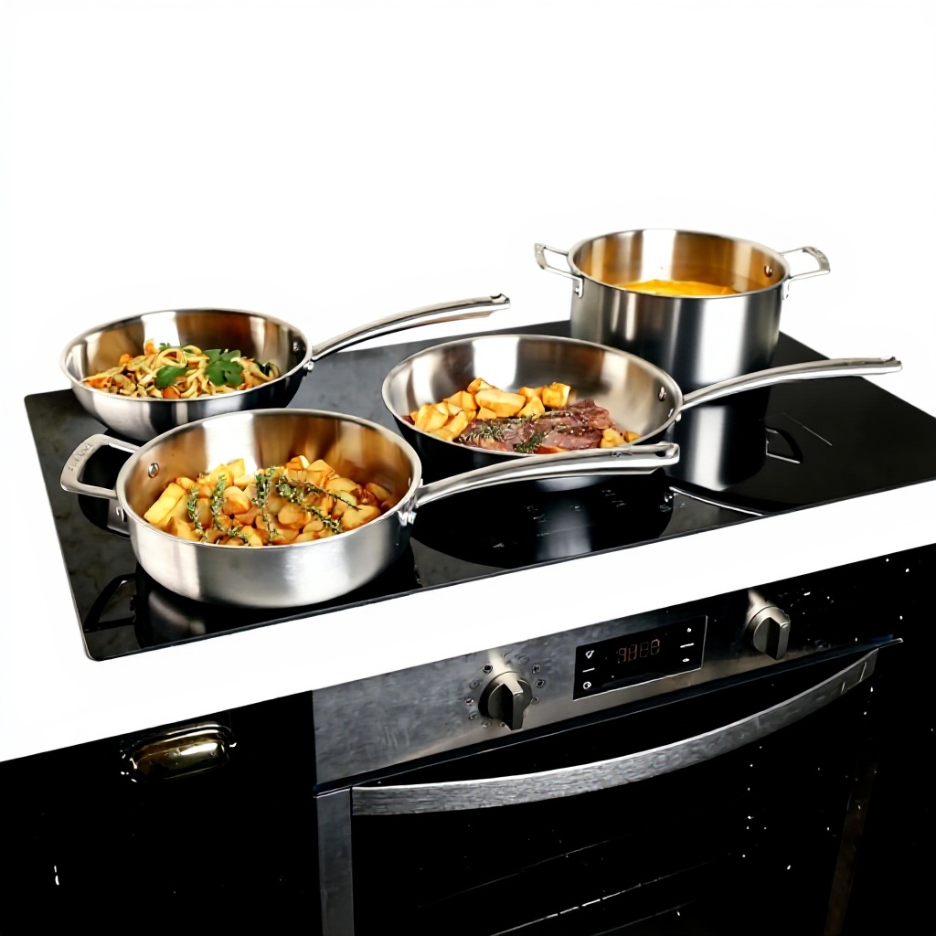 - Répartition uniforme de la chaleur grâce à la construction triply en aluminium et acier.