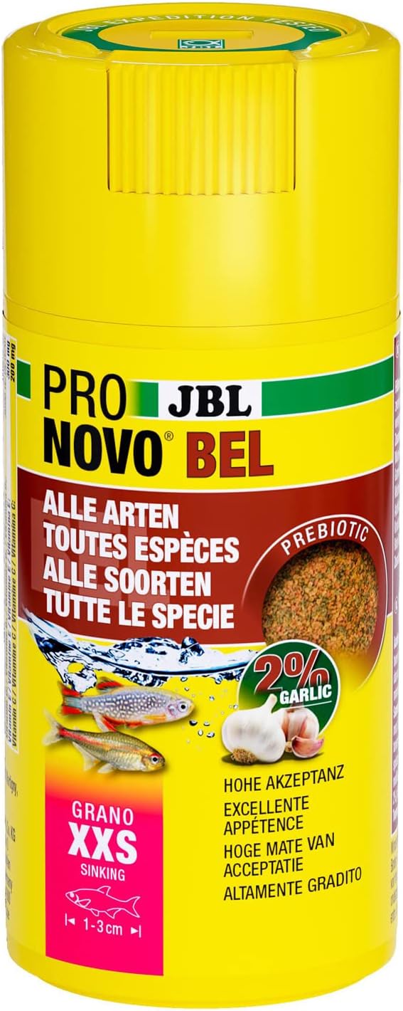 Les granulés JBL PRONOVO BEL GRANO sont conçus comme un aliment de base complet pour les poissons d’aquarium de 1 à 3 cm. Ils combinent des ingrédients naturels de haute qualité, dont du saumon, des crevettes et du calmar, avec des prébiotiques pour soutenir la santé intestinale. La formule inclut de l’astaxanthine naturelle issue du krill et de la spiruline, assurant une coloration optimale des poissons d’ornement.