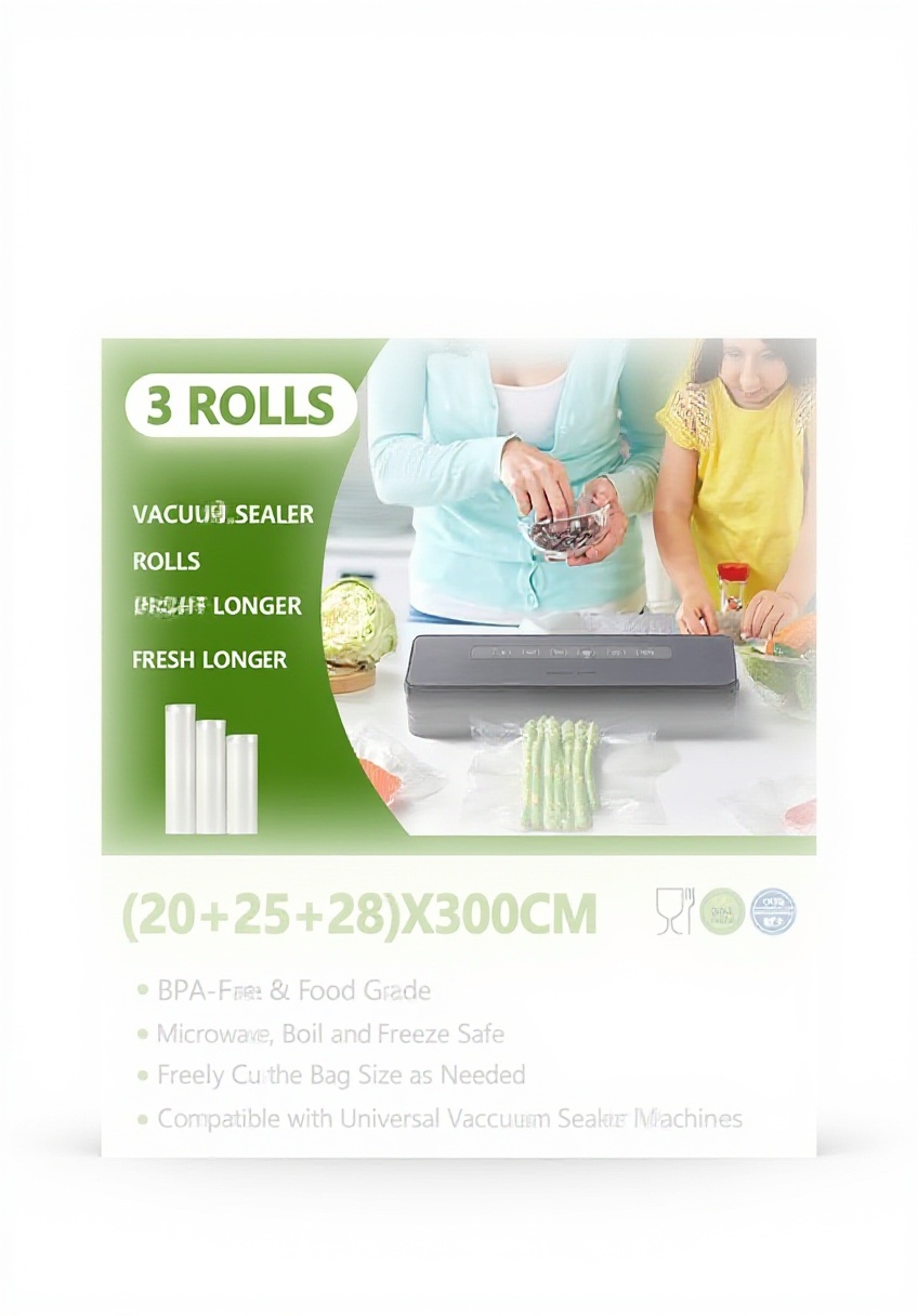 Le pack comprend 3 rouleaux de dimensions 20cm, 25cm et 28cm sur 300cm de longueur, soit 900cm au total. D’un poids de 480g, ces sacs transparents s’adaptent à toutes les machines sous vide du marché grâce à leur compatibilité universelle.
