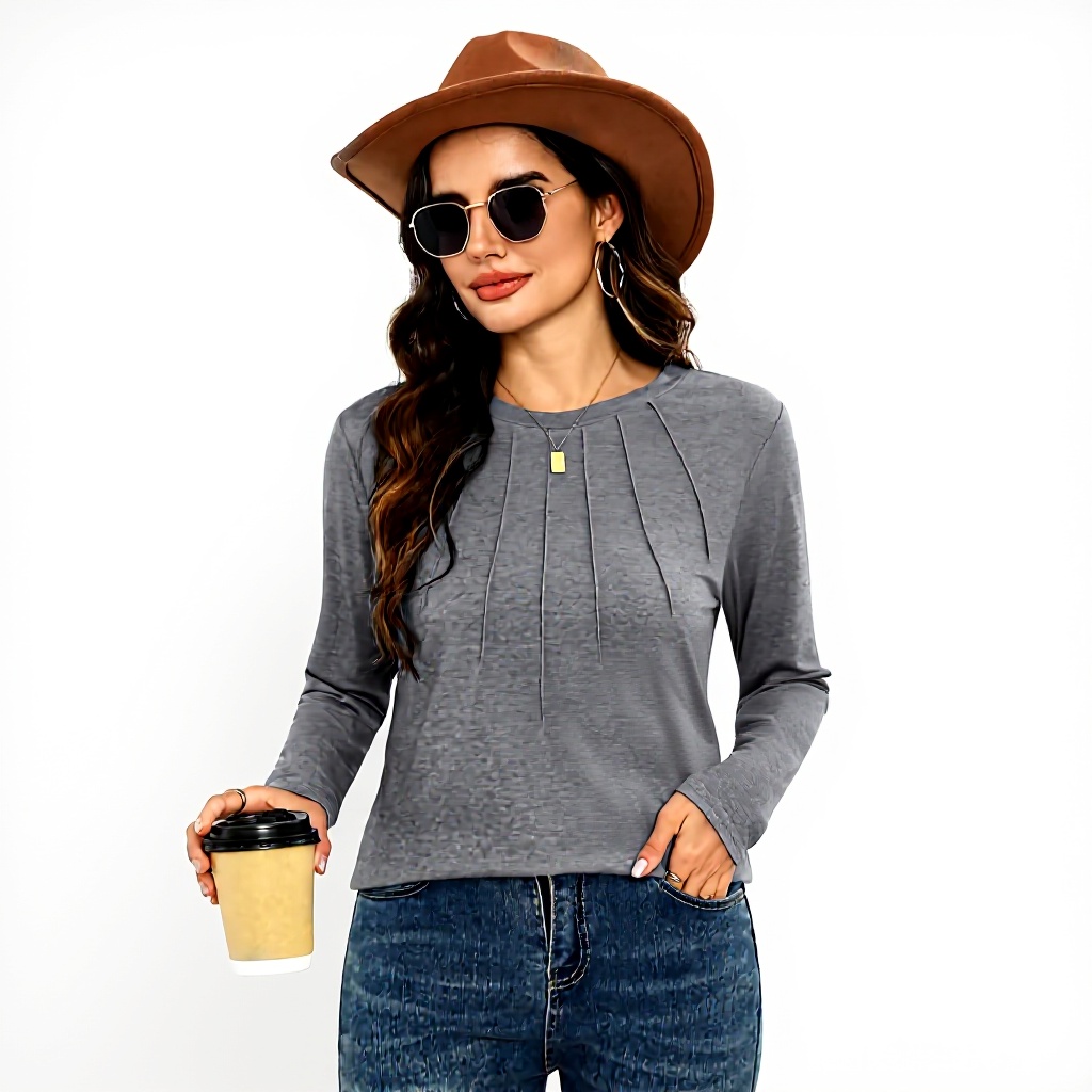 Le t-shirt manches longues Gyabnw allie confort et style avec son col rond et ses plis élégants sur la poitrine. Conçu en coton respirant, il s’adapte à toutes les occasions, du bureau aux loisirs. Sa coupe décontractée et ses coloris variés en font un basique indispensable pour la garde-robe féminine.