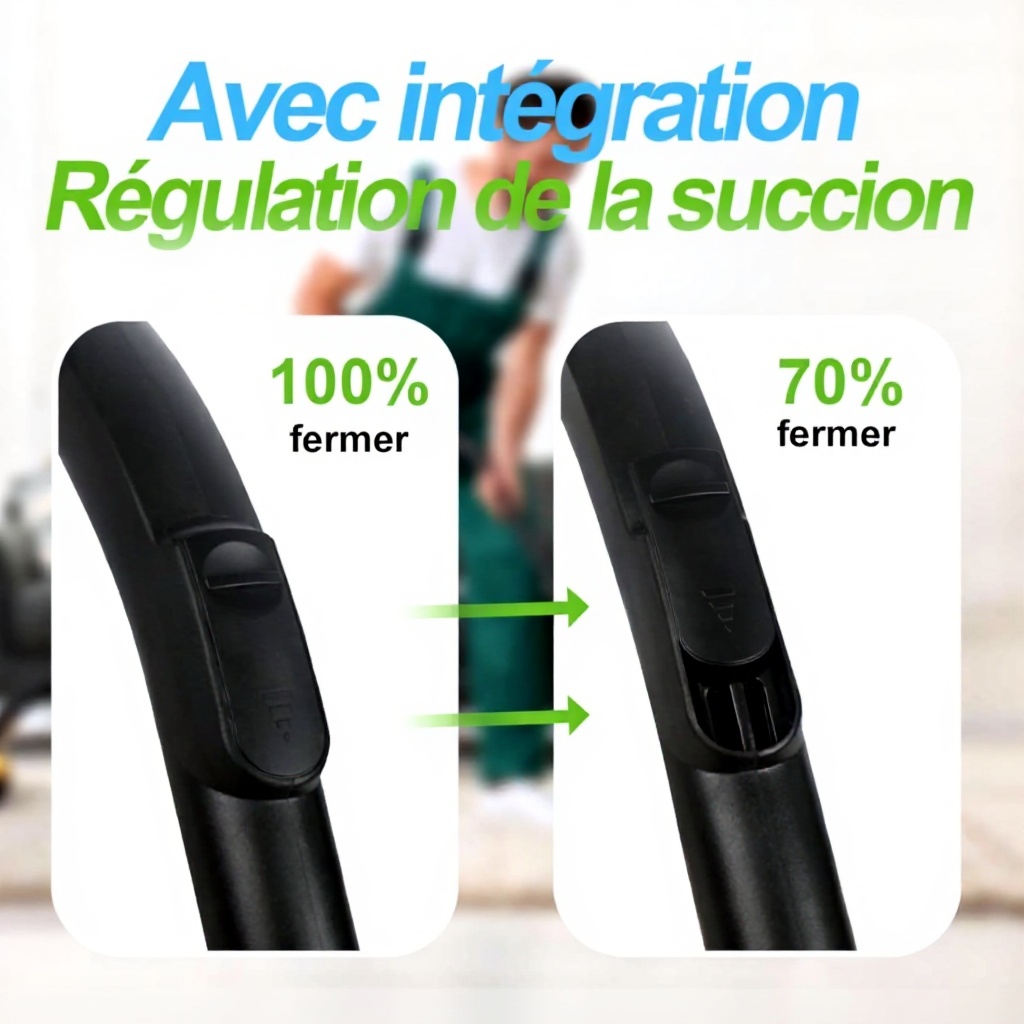 La construction en plastique ABS noir donne à cette poignée une sensation de solidité au toucher, avec une finition mate qui résiste bien aux empreintes digitales. Le mécanisme de verrouillage s’enclenche avec un clic satisfaisant lorsqu’on le connecte au tuyau principal, créant une jointure sécurisée qui ne se desserre pas pendant l’utilisation. Les rainures de renforcement le long du tube ajoutent de la rigidité sans alourdir l’ensemble.